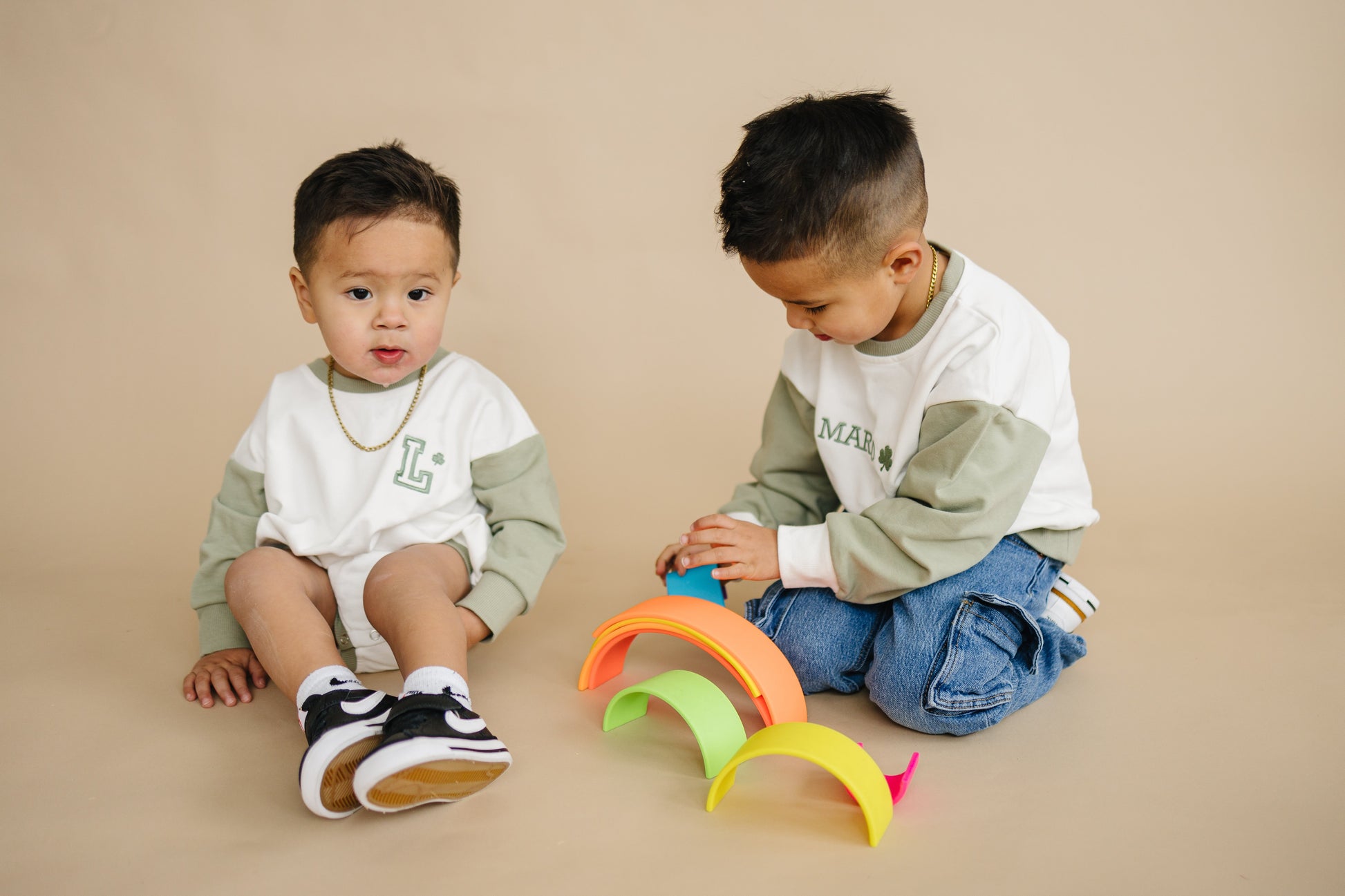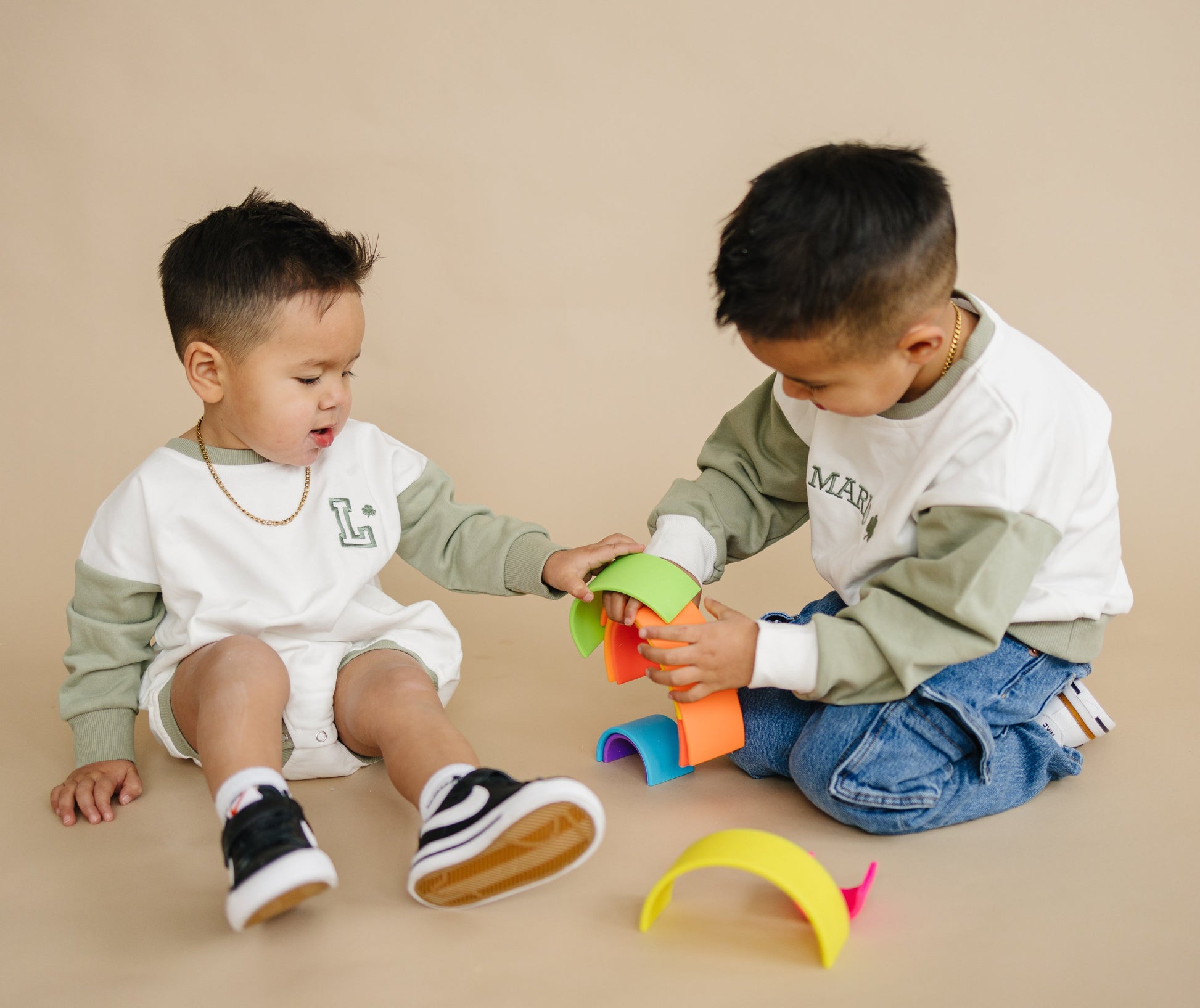 Colorblock Sweatshirt Romper - Sage & White