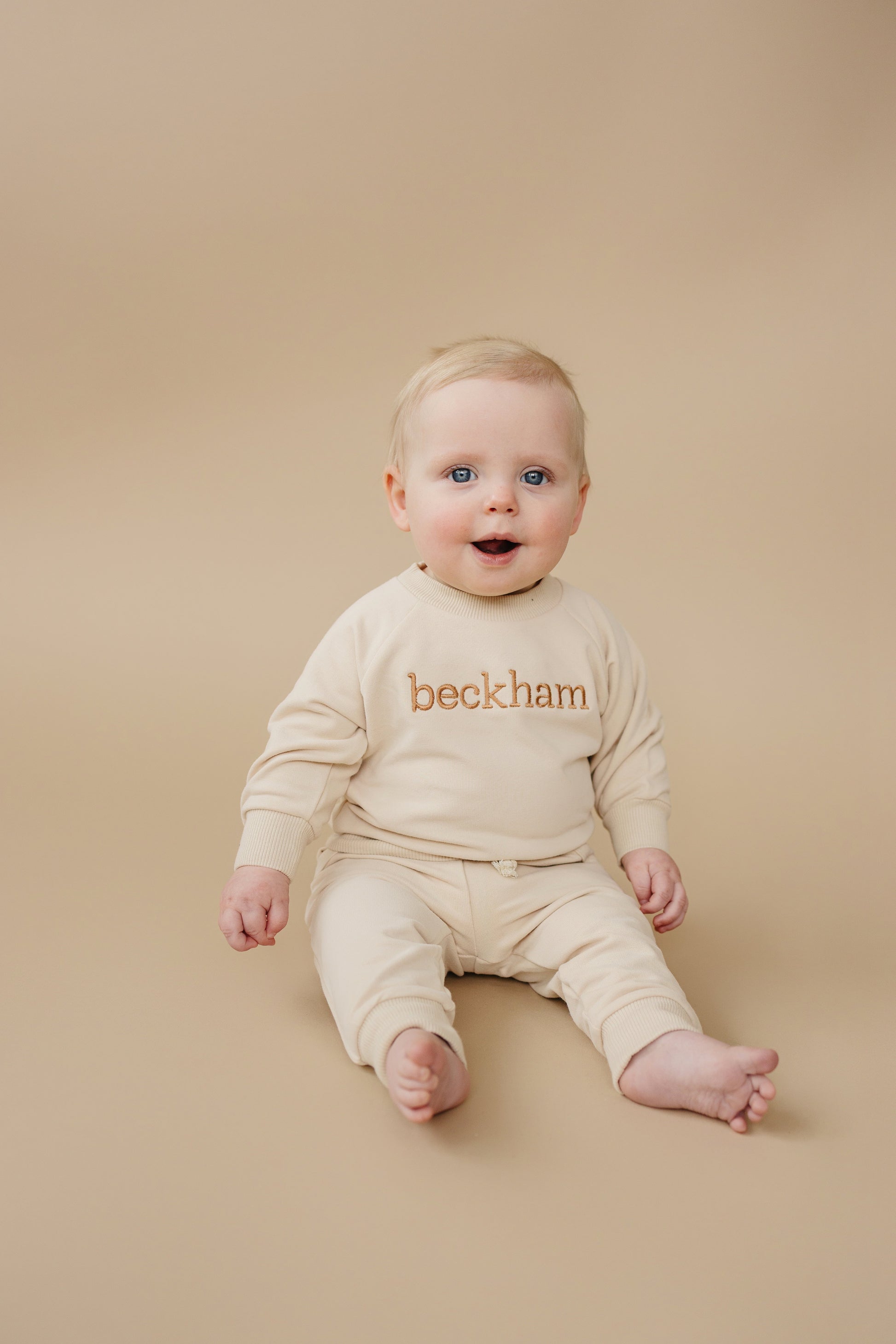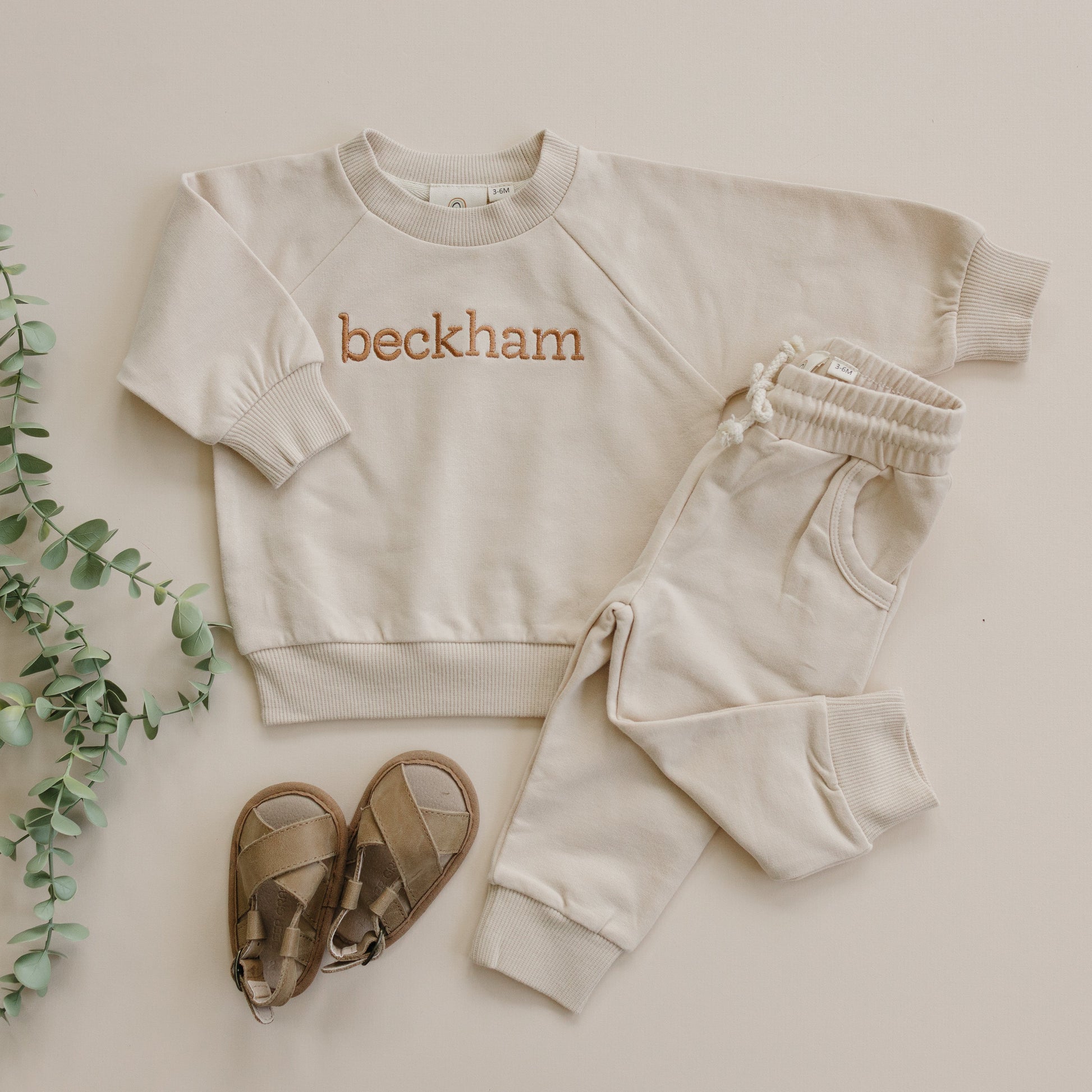 Jogger set is made from 95% organic cotton and 5% spandex.