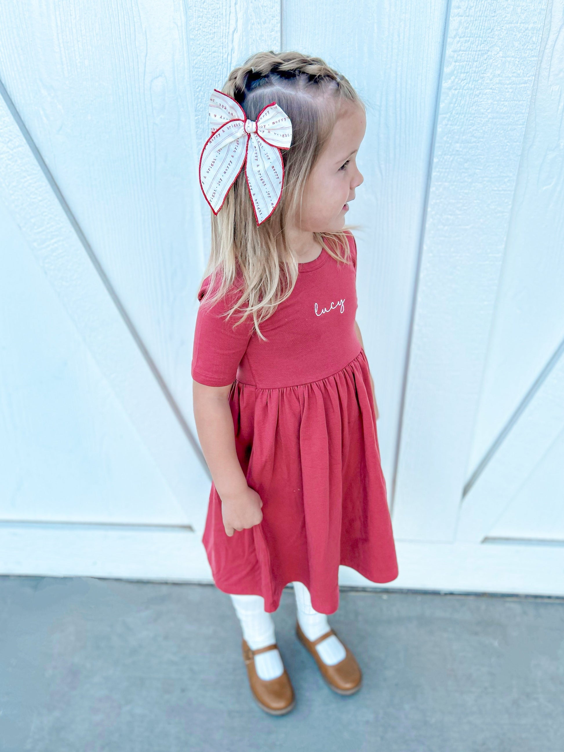 Twirl in style with our Organic Cotton Twirl Dress, available in red or green. Made from 95% organic cotton and 5% spandex, this dress is soft, comfortable, and perfect for dressing up or down. Sizes 6/12 to 18/24 months also include a coordinating diaper cover for a complete look. This dress runs somewhat small, we recommend sizing up as needed.