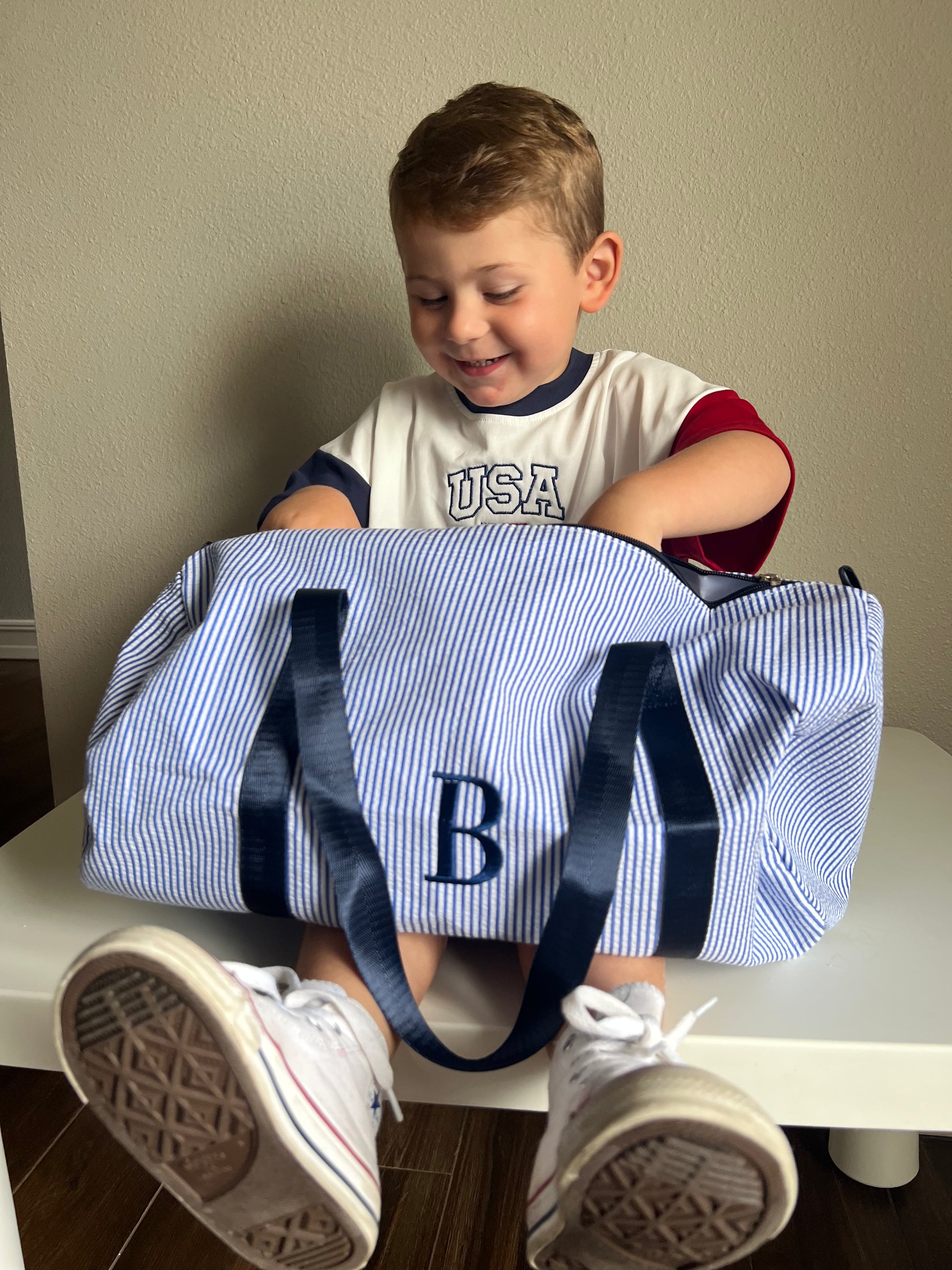 Seersucker Striped Duffle Bag - Pink, Purple or Navy