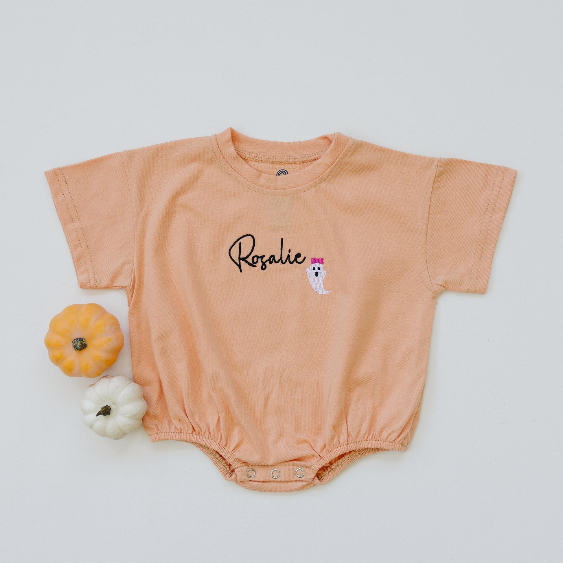 Custom embroidered oversized t-shirt romper - elevate your little one's style with a personalized touch. Crafted with care, this romper offers convenient snaps at the crotch for easy dressing and diaper changes.